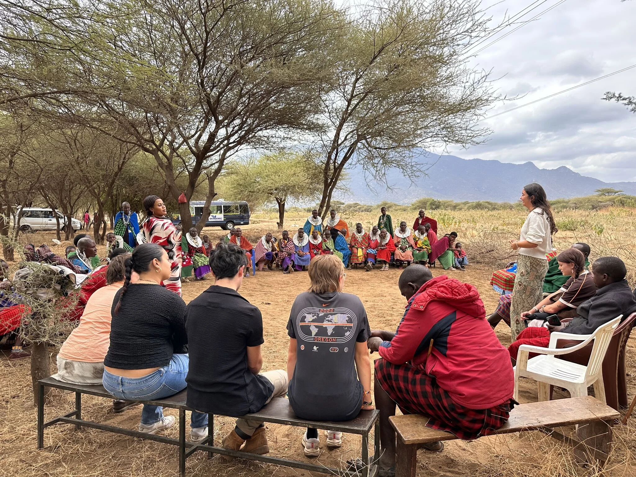 Our students also engaged extensively with a local community partner to workshop the intersection of Climate Change, Gender and Human Rights, facilitated by local experts and more than 20 local participants who taught and inspired all of us. We shared our knowledge, too, but WE were the real learners in Africa. Students reached even higher heights with a visit to the United African Alliance Community Center near Arusha with Charlotte O'Neal, Pete O’Neal and their cultural community.
